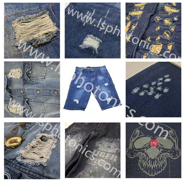 此款設(shè)備針對(duì)服裝行業(yè)及牛仔布表面水洗,打標(biāo),破洞,貓須等